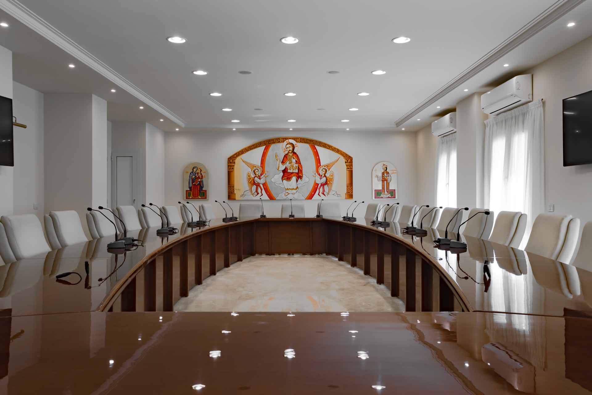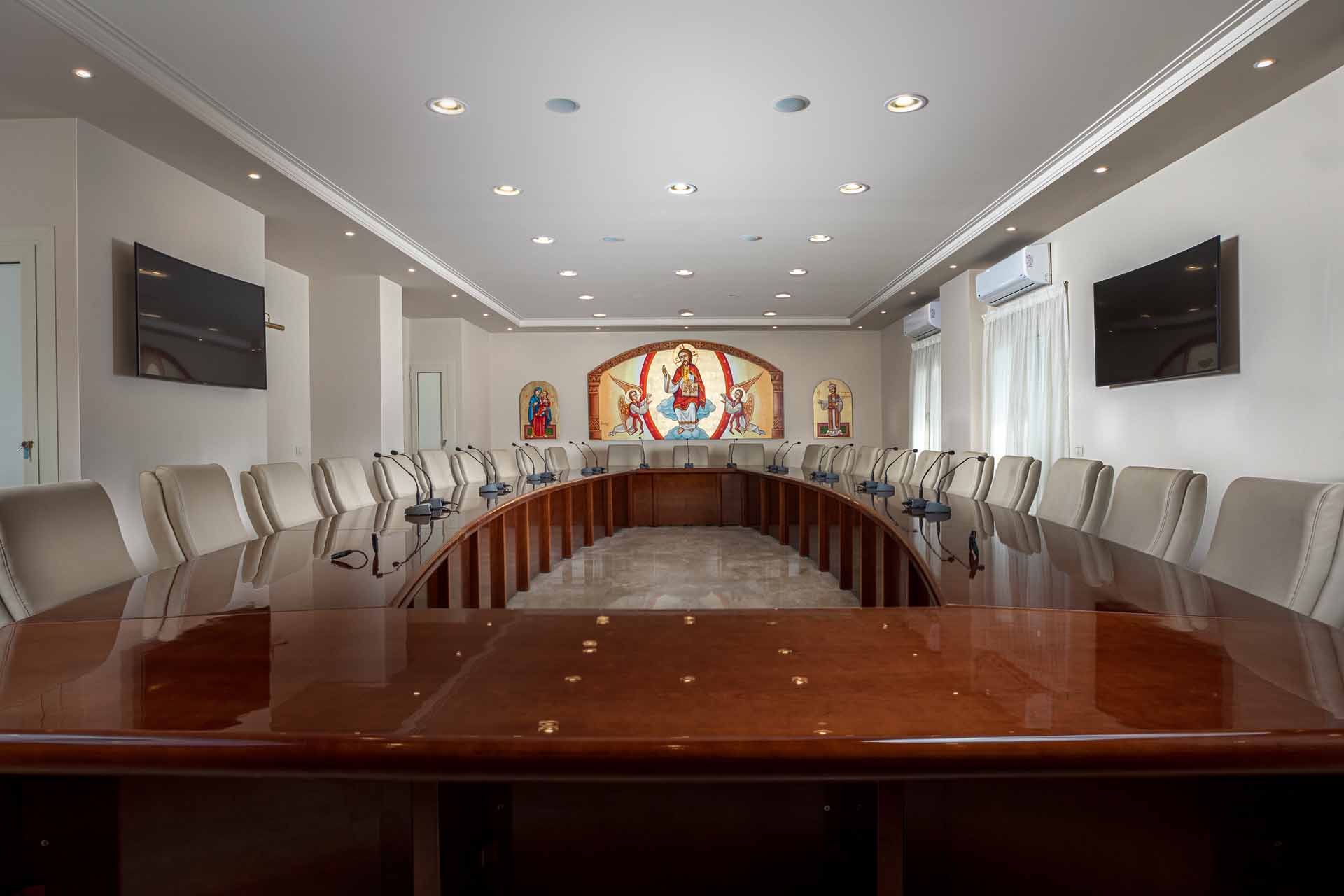 The project was executed at the Patriarchs House of the Catholics in Maadi, in record time. Following the design of a spacious meeting room characterized by luxury and quality all in one.